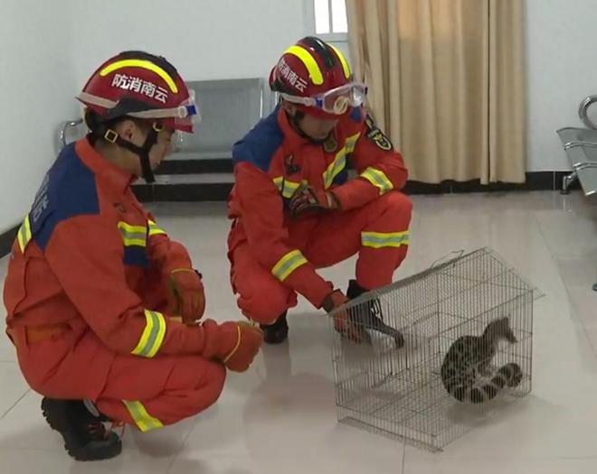 目前,公安与消防部门已联合将这只斑林狸送至野生动物收容救护点。据普洱市公安局思茅分局环食药侦大队辅警徐丛一介绍,待确认这只斑林狸具备野外生存能力后,相关部门将会选择合适的时机,以科学的方式将其放归自然。